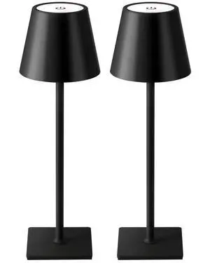 2 Pack Cordless Table Lamp, Portable LED Desk Lamps, 5000mAh Battery Operated, 3 Color Stepless Dimming Up, for Restaurant, Bedroom, Outdoor Camping, Coffee Shop, Night Light, Rechargeable (Black)
