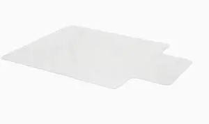 - Features: Protects floors from chair caster scratches, Water-resistant to prevent spills, Anti-slip texture for safety, Flat design with anti-curling tech, Key-shaped for ergonomics, Compatible with up to 0.2" carpet with underlay, Durable PVC minimizes wear, Semi-translucent design blends with office space, Conceals wires and prevents slips, Bobbled surface for stability on