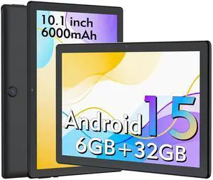 DigiLand 10.1 Inch Tablet Android 15, 6GB RAM 32GB ROM, 10.1" IPS HD Display (1280x800), 6.5H Battery, 5MP Camera, Dual Speakers, WiFi, Bluetooth 5.0, Type-C, Portable Tablet