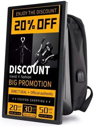 ZPNUZDU 21.5 In Touch Advertising Digital Backpack with 2K LCD Backpack Screen Support Usb/App Remote Input Android 11 4G+32G