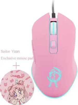 Pink Optical Mouse Sailor Yoon Gaming Computer Wired Mause Mute Pretty Backlit Colorful Mice 3200DPI For Girl Women Gift PC Game
