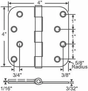 ZORO SELECT 56-179SBRS Door and Butt Hinge, 4 in Leaf W x 4 in Leaf H, Satin
