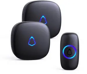 Wireless Doorbell, Easy installation, Waterproof, Adjustable Volume, 58 Chimes, Colorful LED, 1000Ft Range, M520+F55, Black