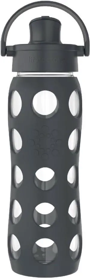 Lifefactory 22-Ounce Active Flip Cap Glass Water Bottle, 22oz, Carbon