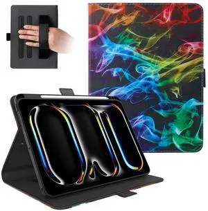 Dteck for iPad Pro 11" M4/M5 2024/2025 Release Smart Folio Case with Adjustable Stand/Auto Sleep Wake/Pencil Holder/Hand Strap/Magnetic Strap Closure, PU Leather Protective Cute Cover, Colorful Smoke