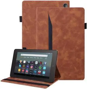 Dteck Case for All-New Fire 7 Tablet (12th Generation, 2022 Release) - Slim Premium PU Leather Folding Multi-Angle Stand Cover with Pocket for Kindle Fire 7 inch 12th Gen 2022, Brown