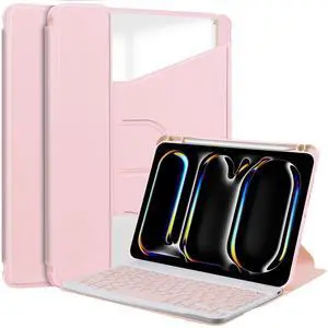 Dteck for iPad Pro 11 Inch M4 2024 Smart Folio Case with Rotating Stand, Built-in Pencil Holder, Magnetic Flap Closure, Auto Sleep Wake, Lightweight PU Leather Protective Anti Scratch Slim Cover, Pink