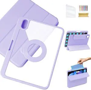 Dteck for iPad A16/10th Generation 11 Inch, PU Leather Folio Stand Wallet Case with Pencil Holder Flexible TPU Back Shockproof Magnectic iPad 10th Gen Smart Cover with Auto Wake/Sleep,Purple