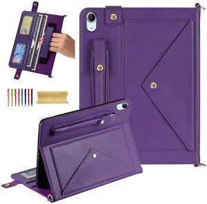 Dteck for iPad 10th Generation Case 2022, Premium PU Leather Business Stand Smart Auto Wake/Sleep Cover Shoulder/Hand Strap Card Slots Wallet Case with Pencil Holder for iPad 10th Gen 10.9",Purple