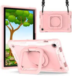 Dteck for Samsung Galaxy Tab A8 (SM-X200/X205) Tablet Case 10.5" 2022 Release, Shockproof Sturdy Rugged Case for Kids with Rotate Handle and Kickstand, Protective Cute Cover with Shoulder Strap, Pink