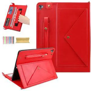 Dteck Case for iPad 6th/5th Generation 9.7 Inch 2018/2017/iPad Air 2/1,Premium PU Leather Business Folio Stand Smart Auto Wake/Sleep Cover Shoulder/Hand Strap Pencil Holder Wallet Case,Red