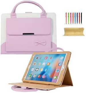 Dteck Handbag Case for iPad 9th/8th/7th Generation 2021/2020/2019 10.2 Inch with Pencil Holder, Folio Stand PU Leather Crossbody Shoulder Hand Strap Card Pockets Magnetic Envelope Wallet Cover,Pink