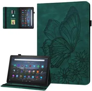 Dteck for Fire Max 11 (13th Generation) Tablet Case 11" 2023, PU Leather Protective Fold Stand With Adjustable Viewing Angles, 4 Card Slots, Cute Butterfly Lightweight Slim Folio Book, Green