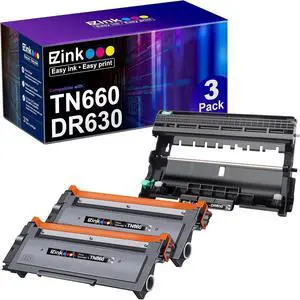 E-Z Ink Compatible Toner Cartridge & Drum Unit Replacement for Brother TN660 TN630 DR630 High Yield to use with HL-L2380DW HL-L2300D HL-L2340DW MFC-L2680W MFC-L2740DW Printer (Black, 3 Pack)
