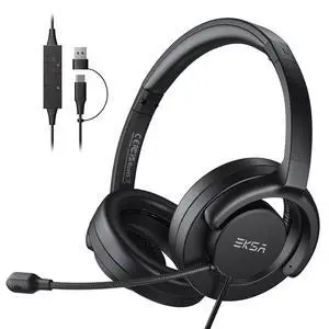 EKSA H27 USB Computer Headset with Microphone for Work, PC Headset with Noise Cancelling Mic, Wired Over-Ear Headphones with in-Line Controls, USB Headset for PC/Computer/Laptop/Call Center/Office