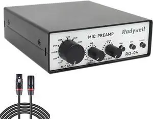 RO-04 Pro Mic Preamp 0~72db Adjustable Gain Boost with Hi-Z, 48V, HPF, Phase for Dynamic Condenser Ribbon Microphone, Guitar, Bass Recording and Podcasting