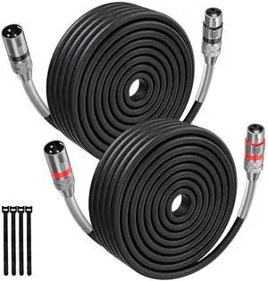 XLR Cable 100 Ft 2 Packs,Microphone Cables,Premium Balanced Microphone Mic Speaker Cable with 3-Pin XLR Male to Female DMX Cable,Black