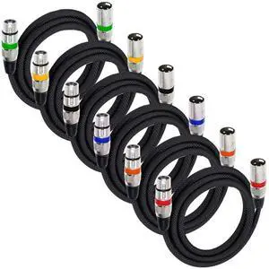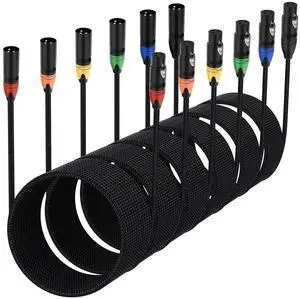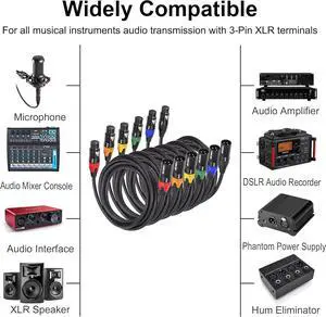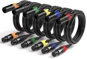 XLR Cables 6-Pack 10ft Professional Microphone Cables with Multicolored Tips Hi-Fi Sound 3-Pin Male to Female XLR Microphone Cable Set Oxygen-Free Copper Wiring - Durable Braided Jacket