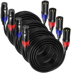 4 Pack, 50 FT XLR Male to Female Cable Professional Balanced Microphone Lead XLR Male to Female Cables, Extension Mic Cable Cord