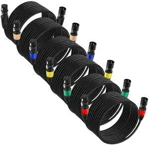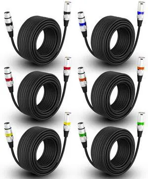 XLR Cables 15ft 6 Pack, Microphone Cable Male to Female, XLR Speaker Cable 6 Color Gold-Plated 3-Pins for Microphone, Mixer, Recording Studio- 15 Feet, 6 Pack