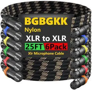 Braided XLR Cables 25ft 6 Pack, XLR Microphone Cable, 3-pin Professional Male to Female Balanced Mic Cable, X LR Speaker Cable for Microphone Mixer Multicolor