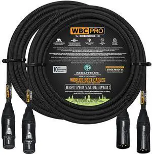 2 Units - 25 Foot - WBC-PRO-Quad Ultra-Silent Ultra-Flexible Balanced Star-Quad Cable with Neutrik Male & Female XLR Plugs & Black Tweed Jacket