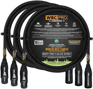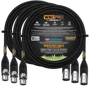 3 Units - 10 Foot - WBC-PRO-Quad Ultra-Silent Ultra-Flexible Balanced Star-Quad Cable with Amphenol Male & Female XLR Plugs & Black Tweed Jacket