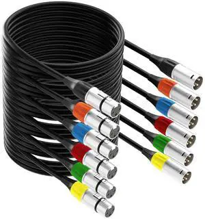 Tisino XLR Cables, 6-Pack 33FT Multi-Colored XLR Male to Female Micphone Cable with 3-Pin XLR Connector Balanced DMX Cable for Recording Studio, Podcast, Mic Mixer, Amplifier