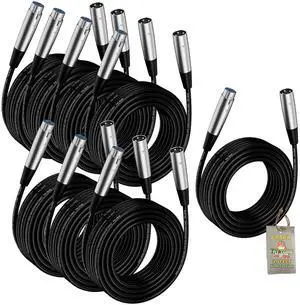 XLR Cables 20FT 10 Pack, Heavy Duty Oxygen-Free Copper 3-Pin Balanced Shielded XLR Male to Female Microphone Cable for Recording Studio Speaker, PA Systems, Audio Mixer and More