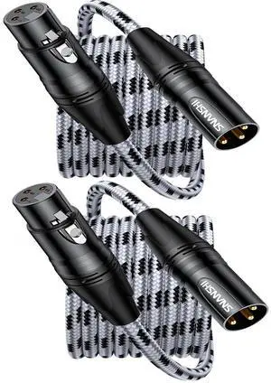 SNANSHI XLR Cables 100ft - 2-Pack Balanced XLR Microphone Cable with Oxygen-Free Copper, Dual Shielding, Gold-Plated Connectors, and Nylon Braided Jacket for Mics, Mixers, and Audio Interfaces