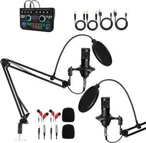 Podcast Equipment Bundle for 2, Podcast Microphone Bundle Audio Interface with Voice Changer, Condenser Microphone Recording Studio Package for Podcasting Live, Streaming, Singing, PC