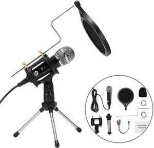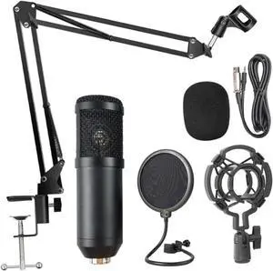 Condenser Microphone Kit PC Studio, Adjustable Microphone with Dual Layer Filter, Mini Stand Microphone for Voice Recording
