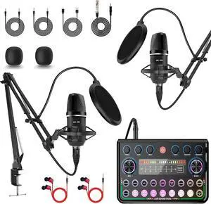ZealSound Gaming Microphone for PC, Noise Cancellation Podcast Mic with Mute, RGB Lighting, Gain, Monitoring, Boom Arm, Pop Filter for iPhone, Mac, Streaming, TikTok, YouTube, Discord, Gamer, Youtuber