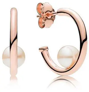 PANDORA Hoop earrings in PANDORA Rose with 2 peg-set white freshwater cultured pearls