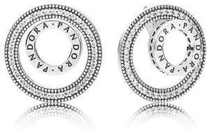 Pandora Signature Two tone Logo & Pave Hoop Earrings