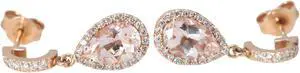 14k Rose Gold Pear Morganite & Diamond Teardrop Halo Earrings (Peach Morganite & White Diamonds VS2)
