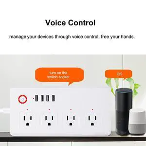 Intelligent Smart Plug WiFi Sockets Power Strip Outlet 4 Outlets + 4 USB Ports Compatible with Android iOS