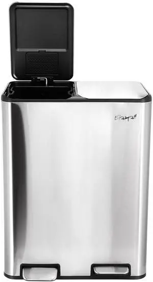 Elama 2 Section 30 Liter/ 8 Gallon Each Section Trash and Recycling Step Bin with Slow Close Mechanism