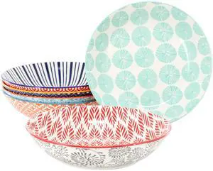 Elama Roxey 6 Piece Assorted Design 20oz Porcelain Footed Bowl Set in Multicolor
