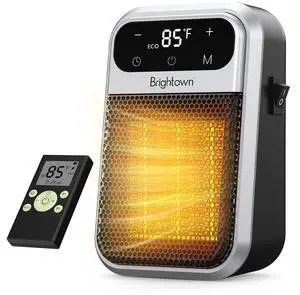 Brightown 800W Plug in Heater with Remote - Outlet Space Heater with Touch LED Display, Small Electric Wall Heaters for Indoor Use with Adjustable Thermostat and 12H Timer for Bathroom Office Bedroom