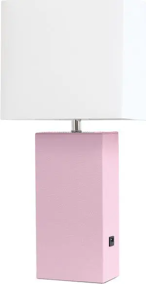 Elegant Designs Modern Leather Table Lamp with USB and White Fabric Shade, Pink