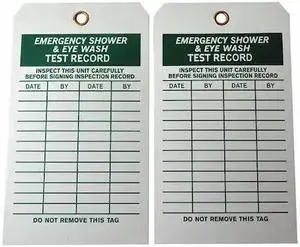 ZORO SELECT 20TH12 Tag, Emergency Shower & Eye Wash Test, Cardstock, 7 in H x 4