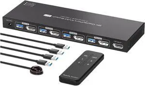 Ennovor KVM Switch 3 Monitors 4 Computers 8K@60Hz, 2 HDMI+1 Displayport KVM Switch Triple Monitor for 4 PC Share 3 Monitor 3 USB3.0 Port(TA403-3DP)