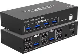 Ennovor KVM Switch 2X2 Dual Monitor HDMI+DisplayPort USB 3.0 KVM Switcher HDMI 2.0 4K 60HZ Extended Display 2 in 2 Out for PC Computer(HDMI DP 2X2,EU Power)