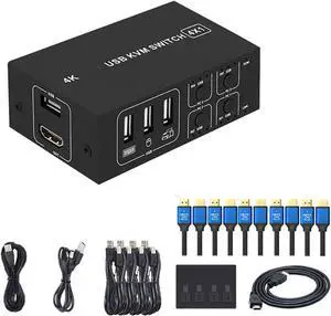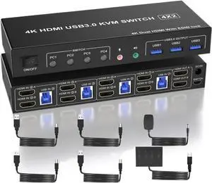 Ennovor USB KVM with Dual Display 4 HDMI Ports 4K 60Hz. Switch 4 PCs Perfect for Small Businesses Operate 4 PCs and 2 Monitors