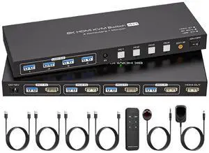 Ennovor KVM KVM-AS-21HA HDMI Line in 2X HDMI 4X 3.5 mm 3-Pin Jack 1 Power Line Out 2X USB 2X 3.5 mm 3-Pin Jack 1x HDMI