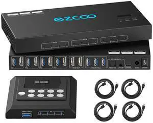 Ennovor 4 Port Dual Monitor HDMI KVM Switch 4x2 Extended Display 4K@60Hz HDMI 2.0 Switch Switcher for 4 PC Share Monitor Mouse Keyboard