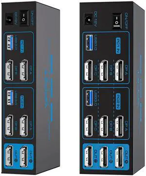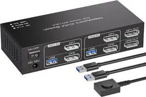 Ennovor USB 3.0 KVM Switcher 2 Input 3 Output 3 Monitors 2 Computers Switch Support 8K@30Hz 4K@144Hz USB 3.0 Displayport for 2 PC Share