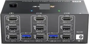 Ennovor KVM303DH KVM Switcher HDMI-Compatible 3 in 3 Out 8K@60Hz, 4K@144Hz Triple Monitor for PC Keyboard Mouse U-Disk Printer