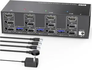 Ennovor HDMI 2.0 KVM Switch 2X2 HDMI DisplayPort Switcher USB 3.0 Extended Display 4K 60HZ Dual Monitor 2 in 2 Out for Computer(HDMI DP 2X2,USA Power)